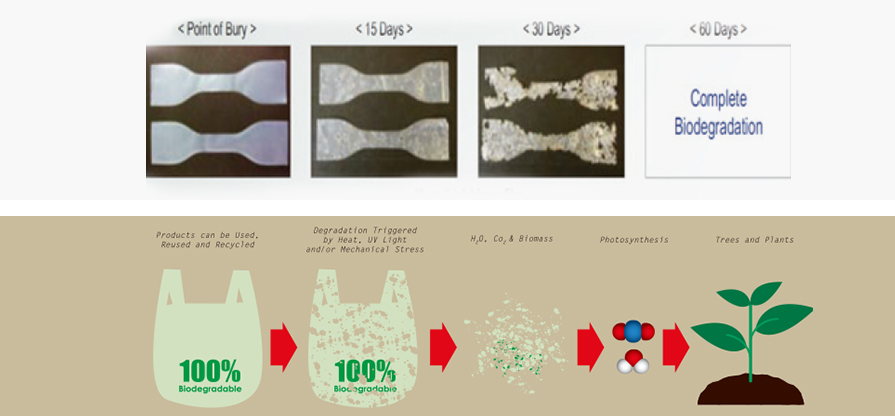 자연환경 안에서 180일 내 완전 분해되는 필름으로 퇴비화 조건아래 미세플라스틱이 발생하지 않음